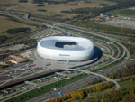 Über der Allianz-Arena drehen wir ab und fliegen zwischen dem Büro-Hochhaus