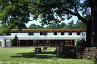 fällt viel Licht in die Tagungsräume und Flure. Die Zimmer sind passend zur Gesamtkomposition des Hauses schlicht eingerichtet und genauso großzügig wie die ganze Anlage geschnitten.
